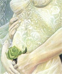 I was rethinking about my daily reading of course, how while it started good it wasn’t so much a Nine of Grails day after all. Then the image of the card popped up in my head. I cannot help but think that the woman on the card is pregnant because of her belly so I usually try to keep this low since as a vampire she cannot have childen, but this card the card was right, it was all about the womb: