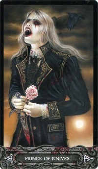 There is an interesting exercise in the book that comes with the Tarot of Vampyres that shows your sun sign, rising sign, your clan and things like that using the cards from the deck.  I shall post my results.