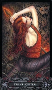 I’m guessing with me being sick and disabled the Hanged Man here tells me I’ll lack energy and I’ll be down and I’ll have to be careful about that. One of the symptom of my disease is fatigue, so I have to manage the little energy that I have. The Queen of Scepters may mean that the sun and the heat will have negative effects on me this summer, or that while the start of the month may be difficult for me I’ll have more energy toward the end of the month.